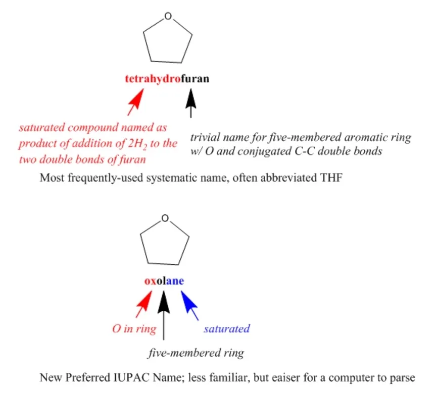 Tanmateix, els noms IUPAC solen ser força difícils de llegir per als químics, i molt menys d’escriure, i les regles no són canòniques, la qual cosa dóna lloc a nombroses opcions diferents per anomenar cada compost.