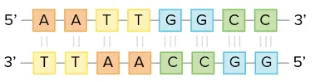 Per exemple, si sabeu que la seqüència d’una cadena és 5'-AATTGGCC-3', la cadena complementària ha de tenir la seqüència 3'-TTAACCGG-5'.
