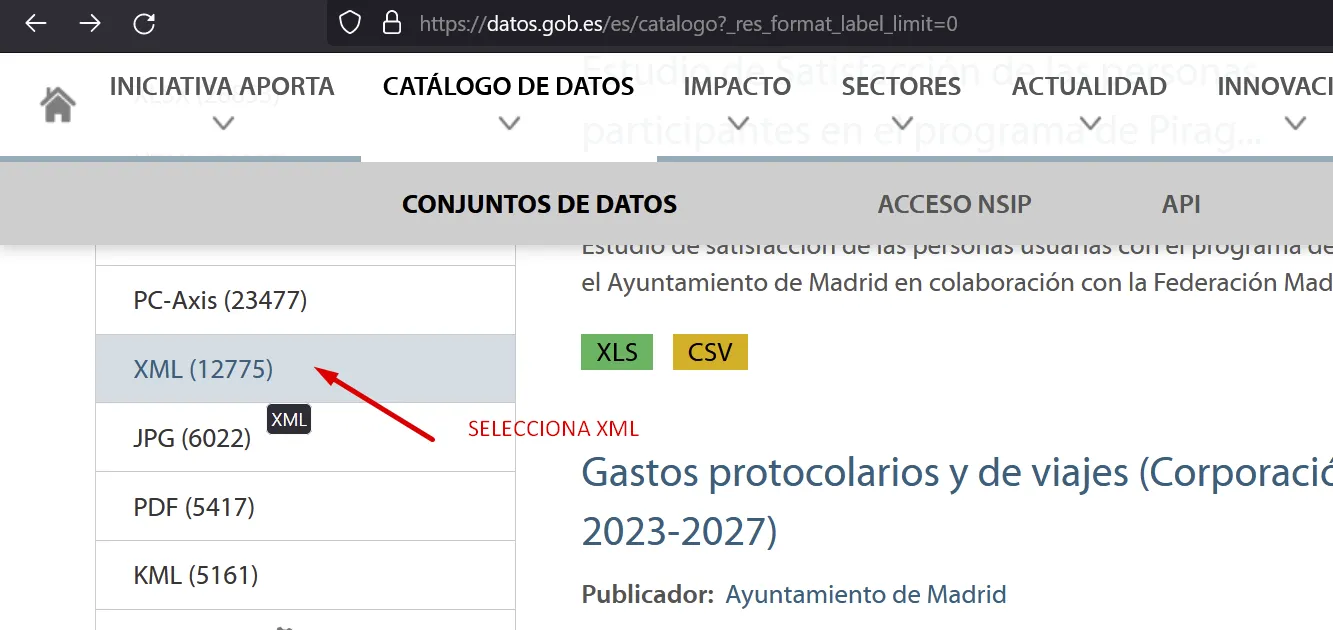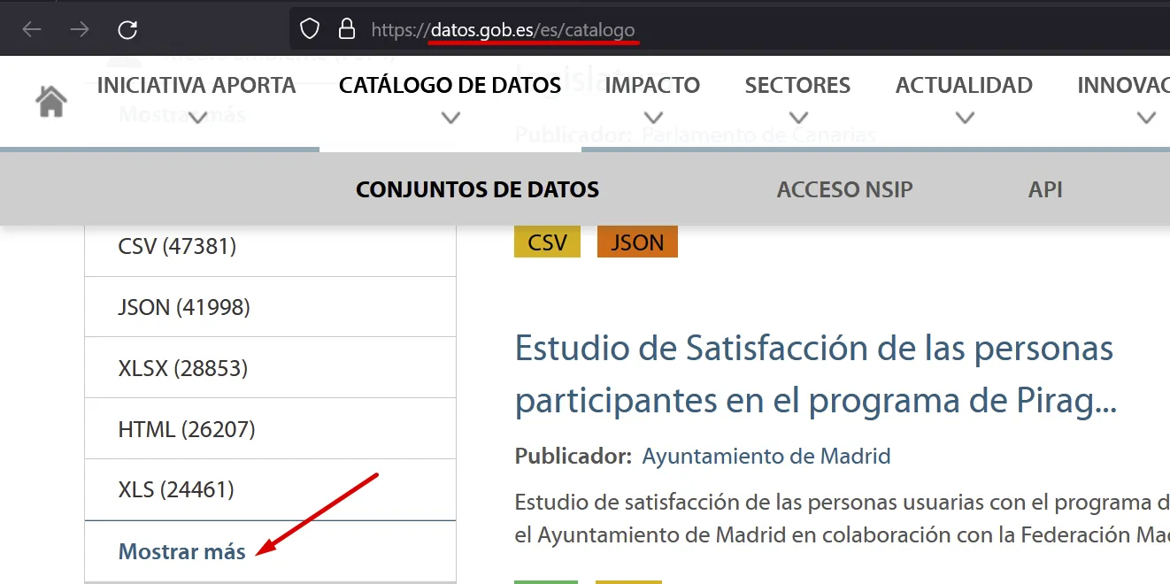 Section titled “datos.gob.es”A Catálogo de datos pots trobar dades en diferents formats