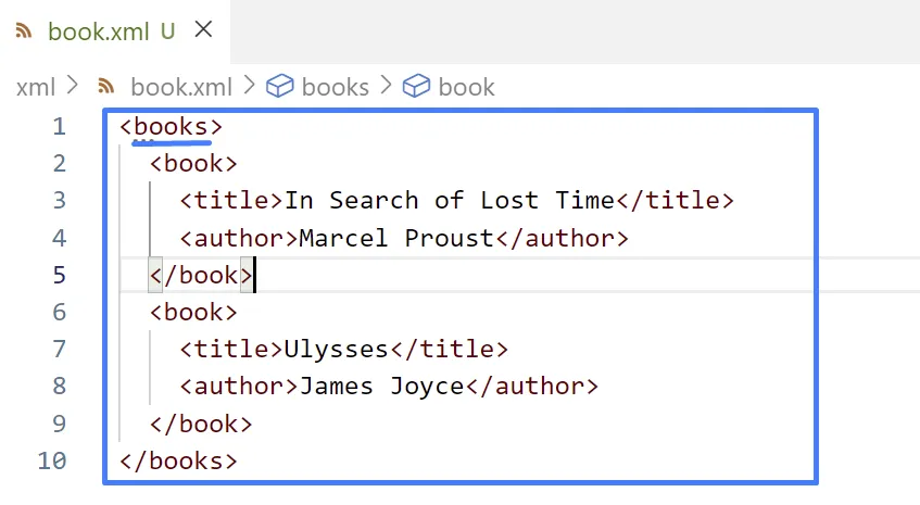 Section titled “Un document XML només pot tenir un element arrel”En el document XML anterior, l’element <book> s’anomena element arrel.