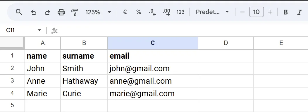 John, Smith, john@gmail.comAnne, Hathaway, anne@gmail.comMarie, Curie, marie@gmail.comPots instal.lar l’extensió “Rainbow CSV”.