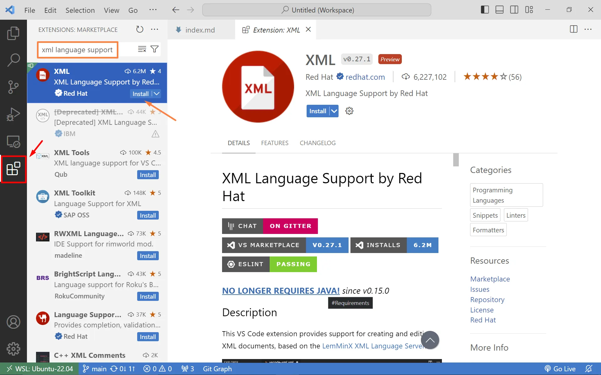 Tens que instal.lar l’extensió XML Language Support de RedHat.