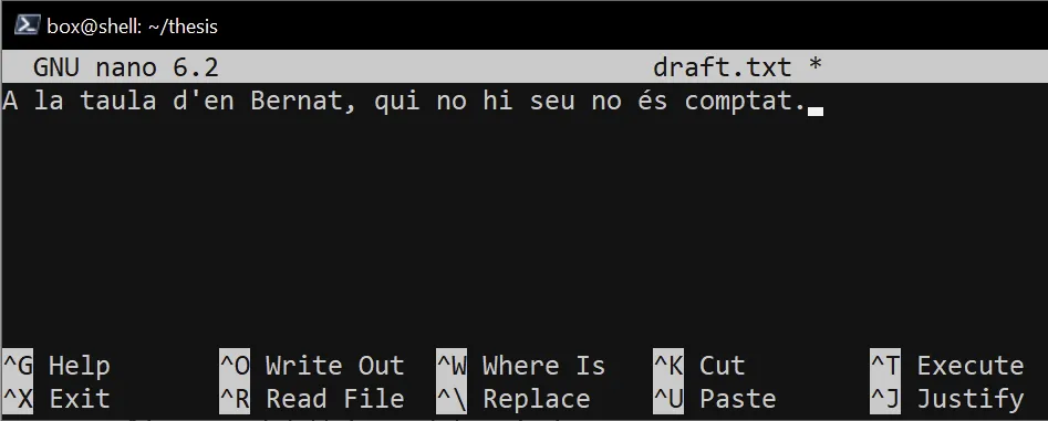 L’indicador va seguit d’un cursor de text, un caràcter que indica la posició on apareixerà la teva escriptura. El cursor és generalment un bloc intermitent o sòlid, però també pot ser un guió baix o a canonada. És possible que l’hagueu vist en un programa d’editor de text, per exemple.