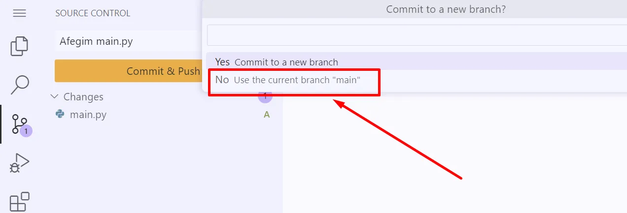 $ git checkout main$ python3 main.pyx is 1El resultat torna a ser x is 1.