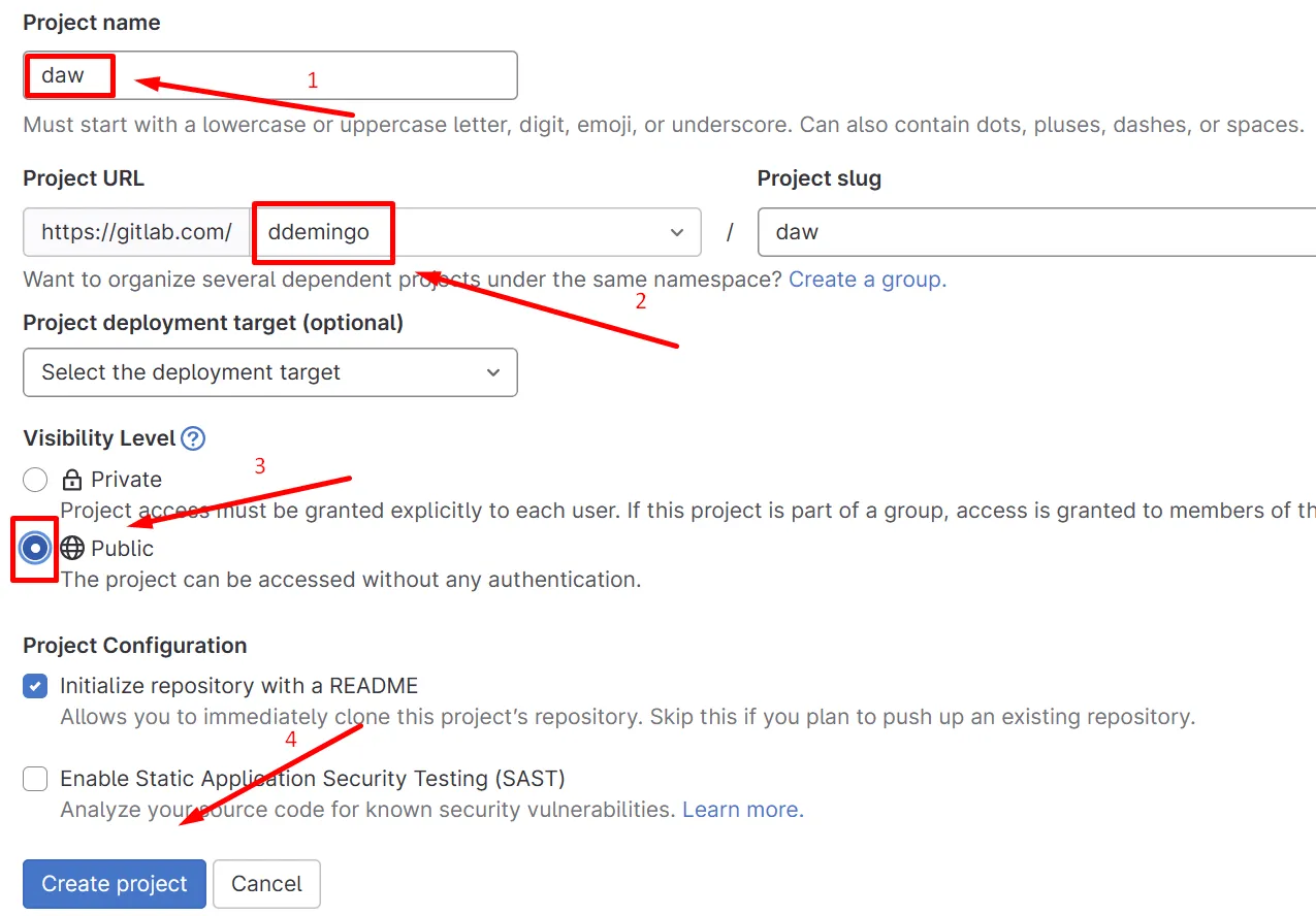 Omple les dades que et demanen i crea el projecte: