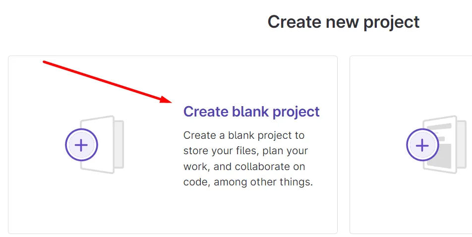 Escull Create blank project: