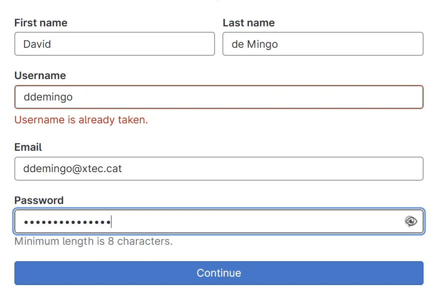 Omple el formulari de registre: