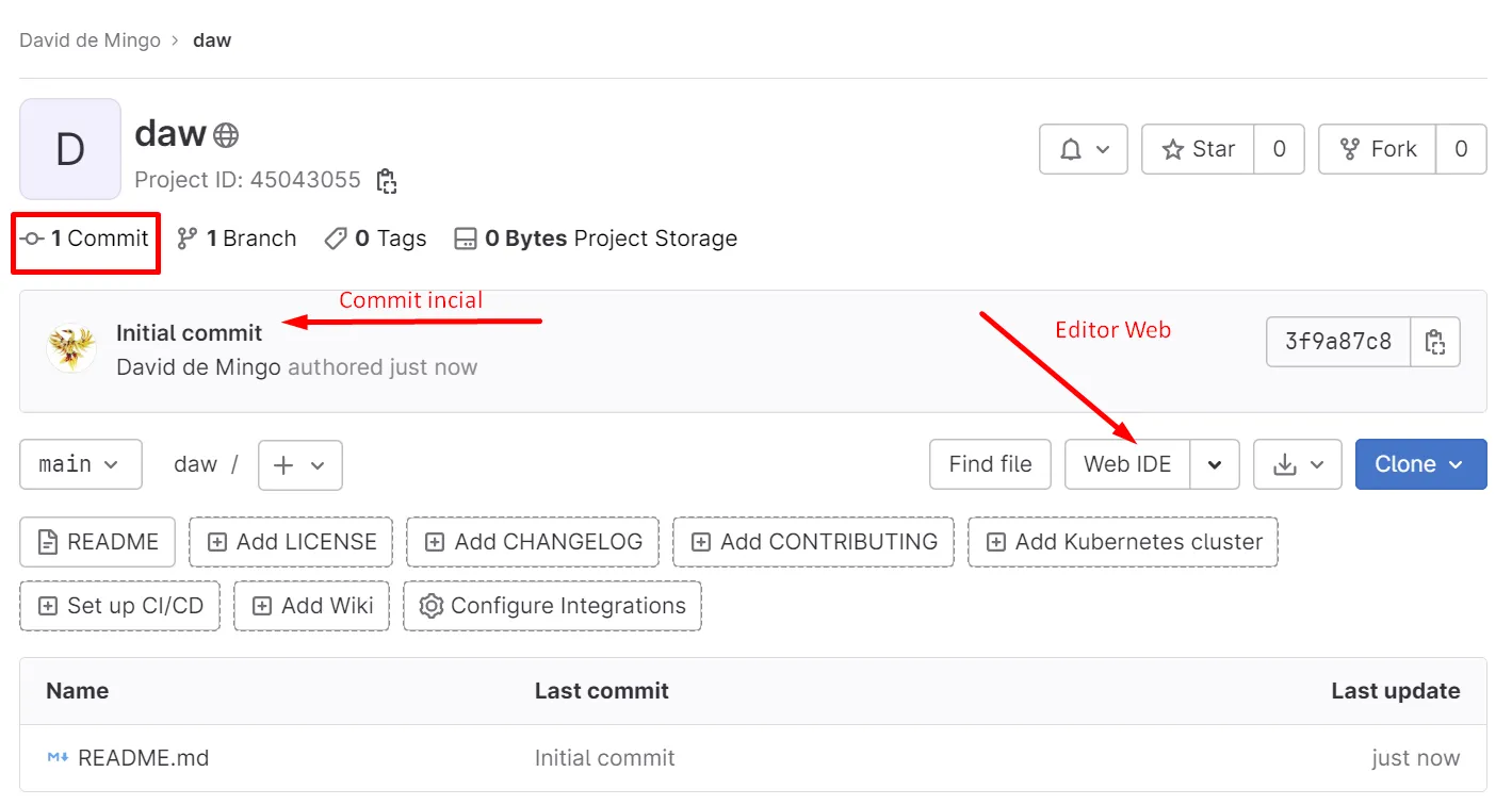 $ git remote -vorigin https://gitlab.com/ddemingo/daw.git (fetch)origin https://gitlab.com/ddemingo/daw.git (push)Pots veure que quan fas un fetch o un push a origin s’està fent servir l’adreça https://gitlab.com/ddemingo/daw.git