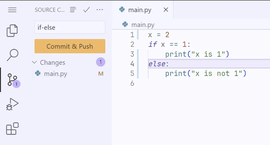 x = 1if x == 1: print("x is 1")I fem un commit de la modificació: