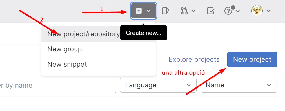 Nosaltres treballarem amb Gitlab. El motiu? Que és una solució oberta que pots allotjar en els teus propis servidors, i que pots organitzar en grups.