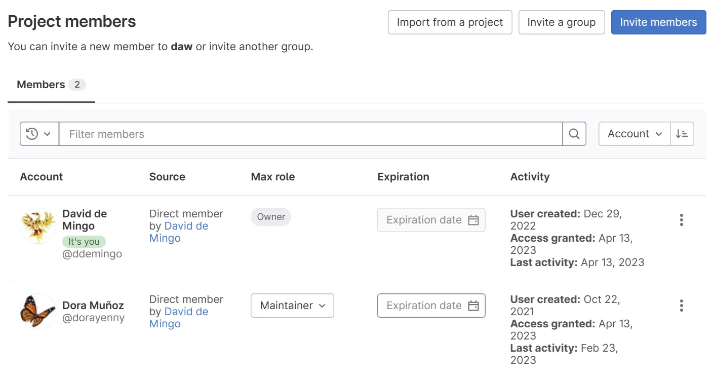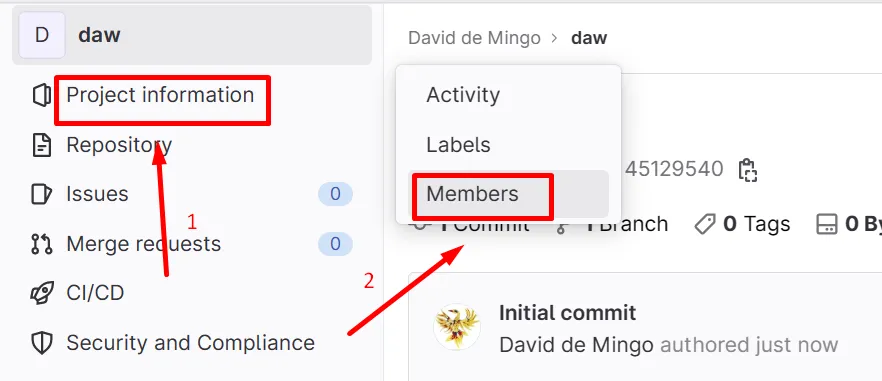 A la pàgina del projecte fes clic a Project Information > Members: