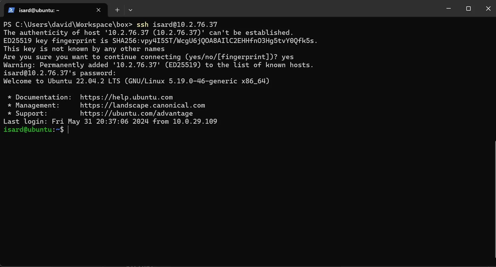 Verifica que et pots conecta per ssh a la IP de la màquina: