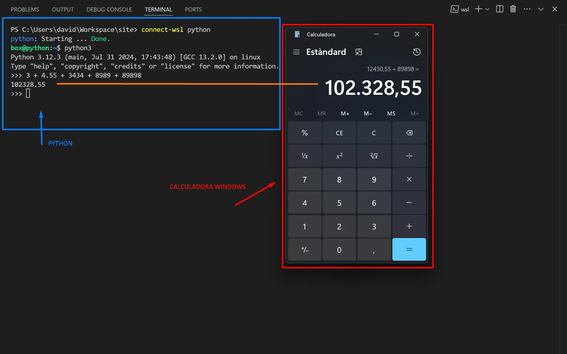 Ja se que les pots sumar totes de cop amb Python perquè caben perfectament a la pantalla de l’ordinador, i pots revisar que no t’has equivocat, però amb la calculadora del Windows no passa el mateix, per posar un exemple.