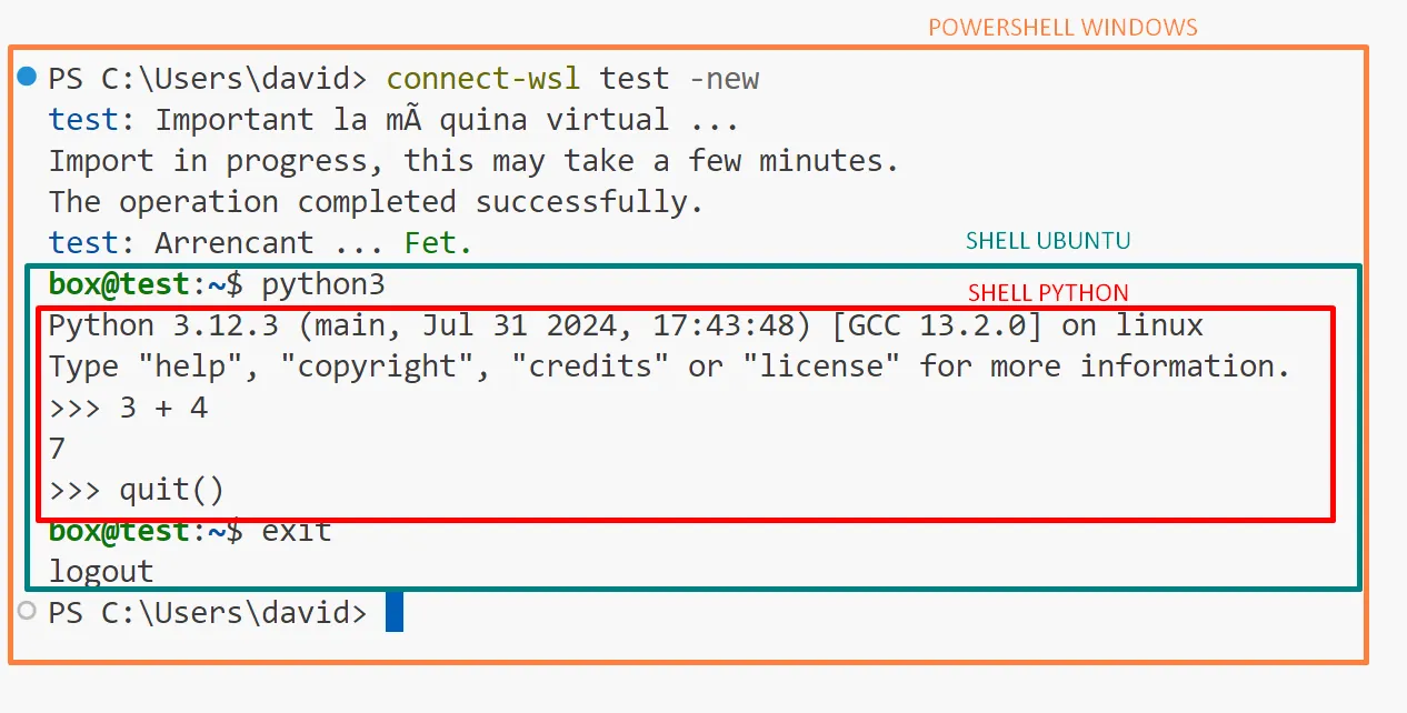 > wsl --update> wsl --install -d ubuntuA continuació inicia l’interpret de Python en mode interactiu: