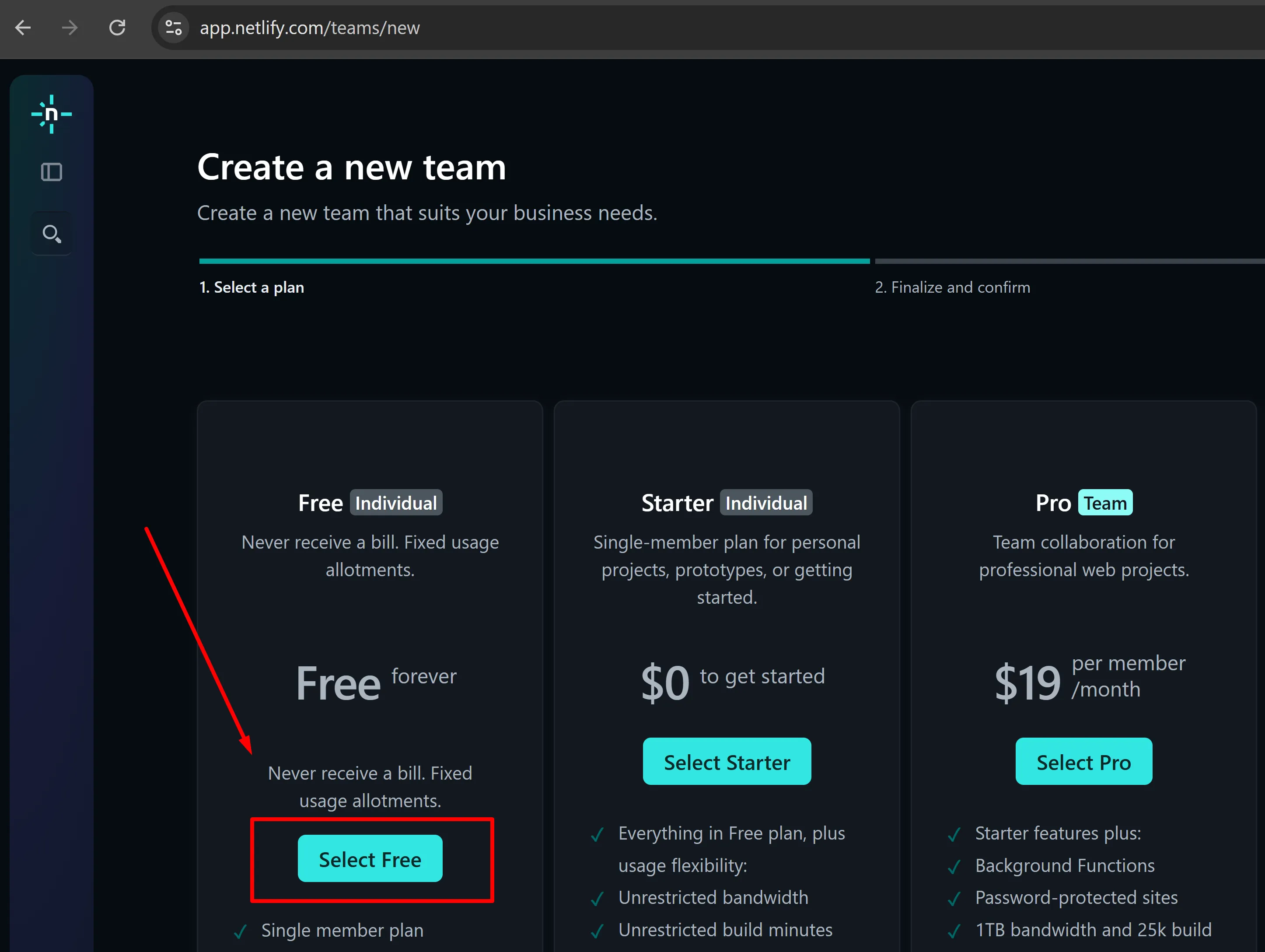 - Crea un “new team” amb un pla gratuït: