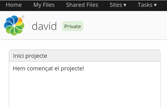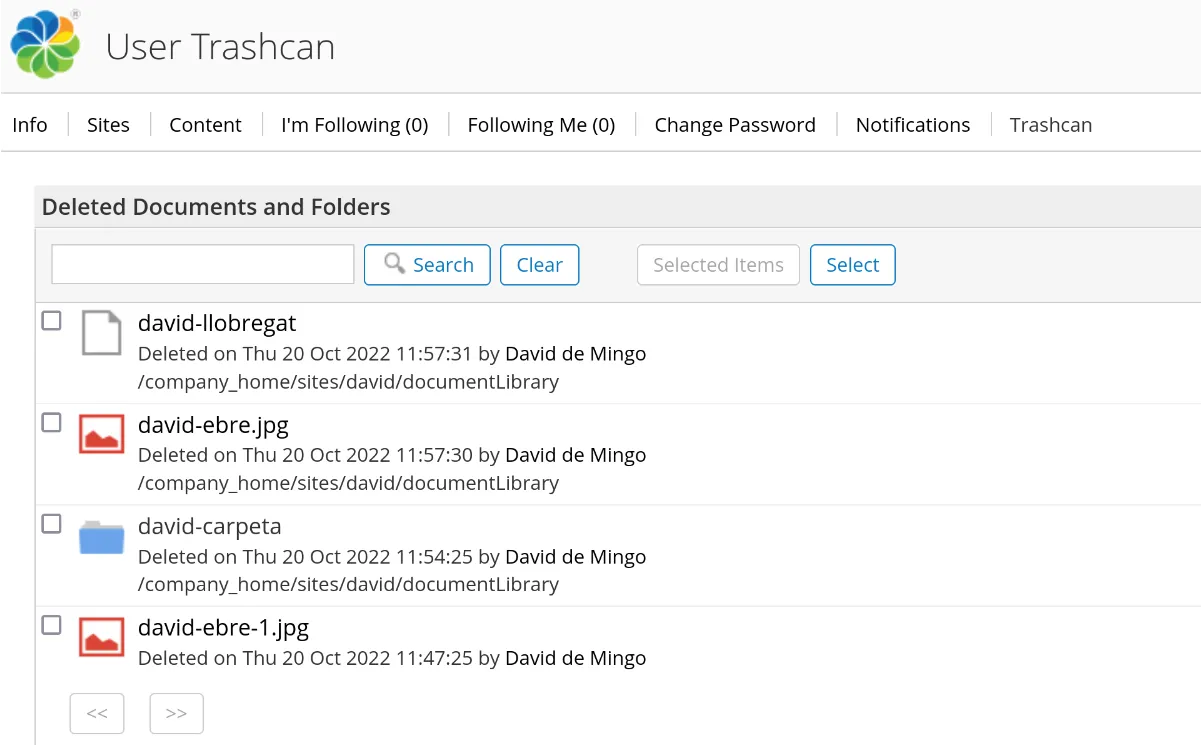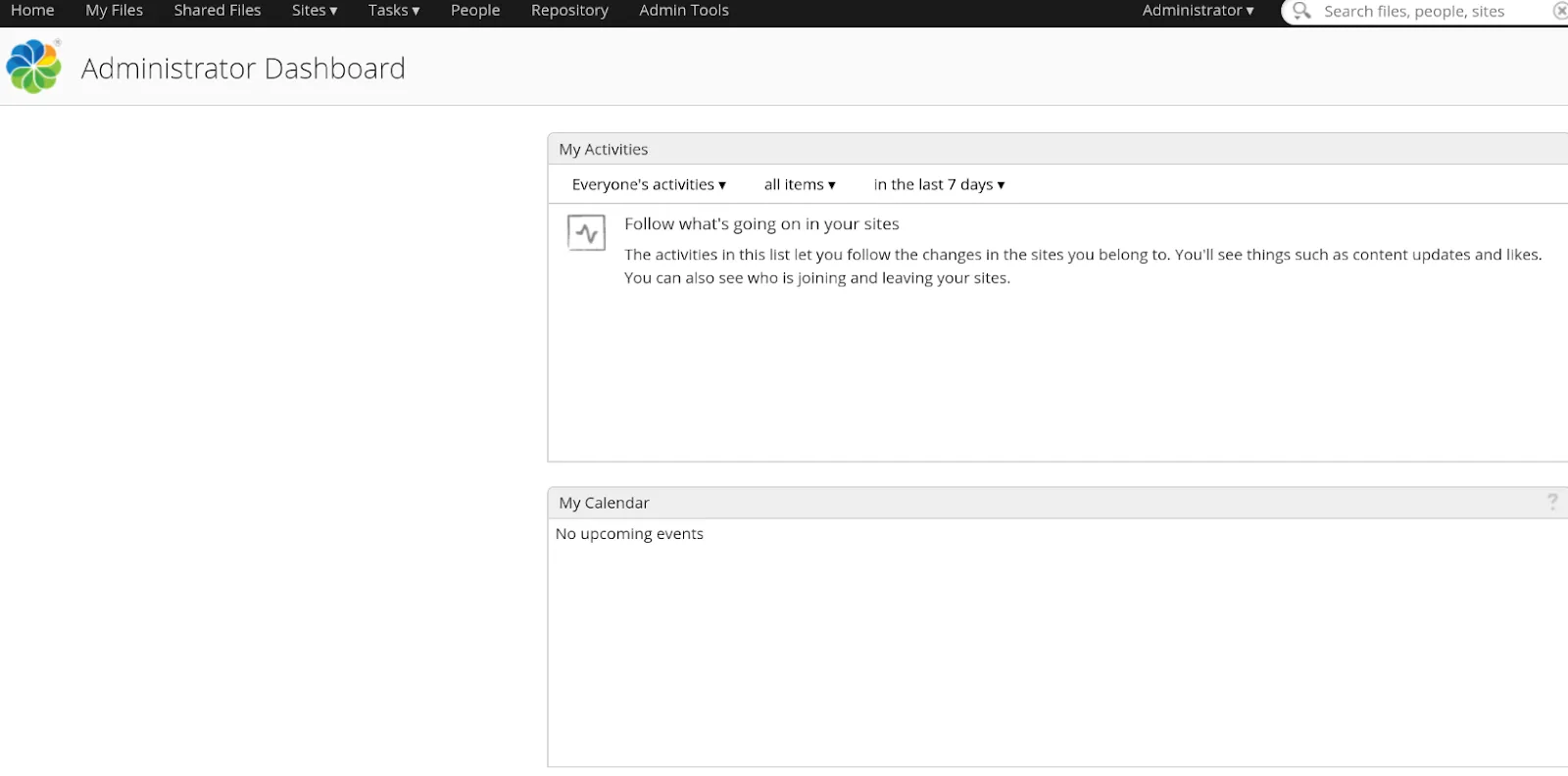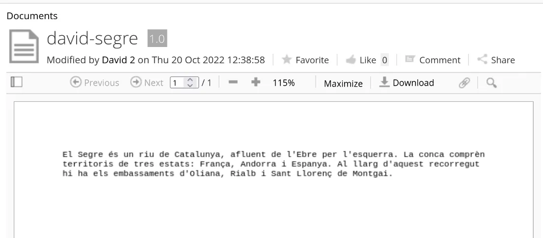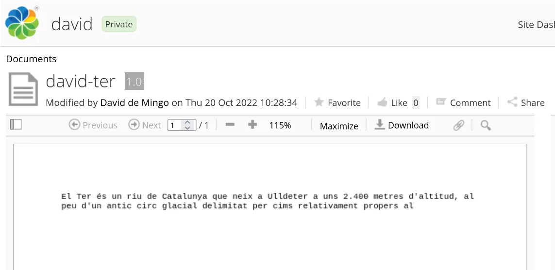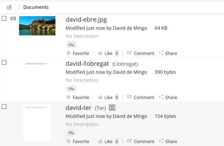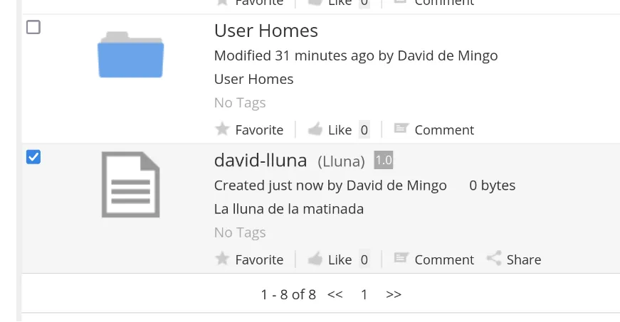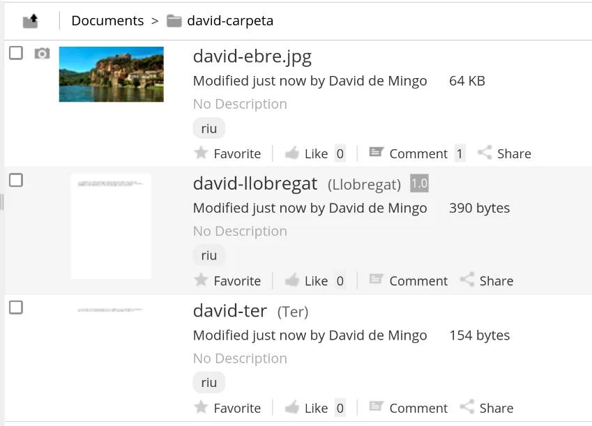 Section titled “Fitxers i carpetes”També pots tenir contingut fora de la Document Library a My Files, Shared Files o Repository