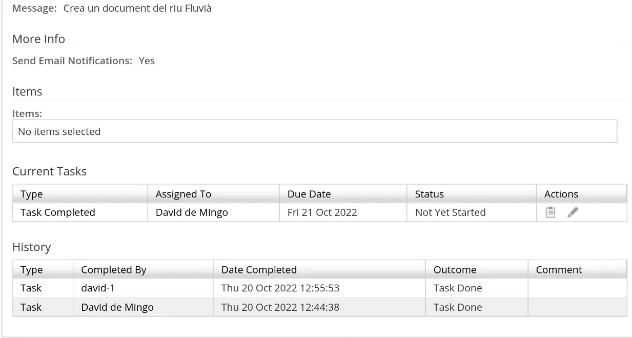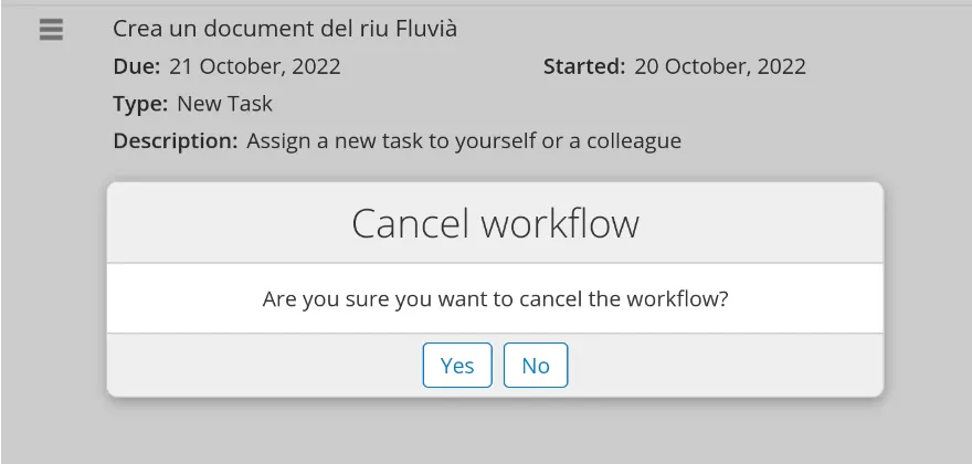 Section titled “Workflow”Les tasques i els fluxos de treball t’ajuden a fer un seguiment de les coses que heu de fer vosaltres i els altres usuaris. Pots crear una tasca o un flux de treball autònoms, o pots adjuntar-hi un fitxer.