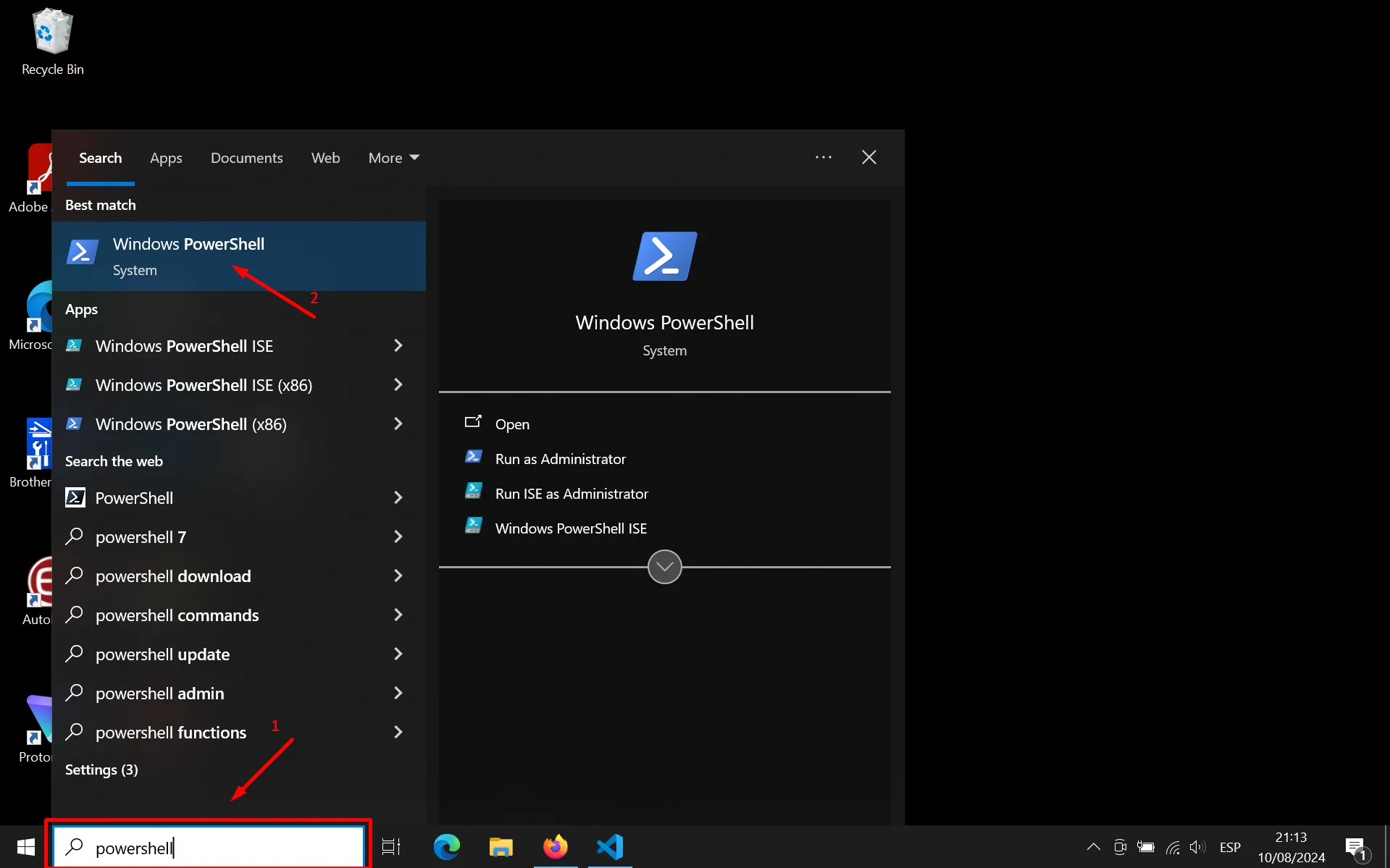 Section titled “Introducció”Per començar una sessió de Powershell apreta la tecla Windows ⊞ i escriu powershell.
